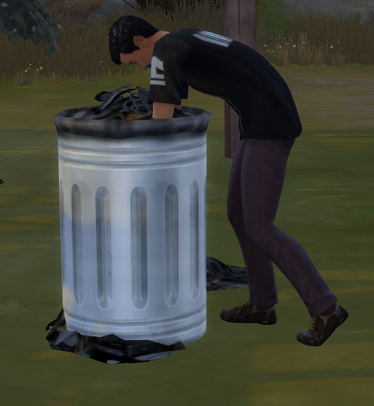 Lass deinen Sim auf das Grundstück ziehen, baue auf dem Wohngrundstück einen Park oder lade dir einen aus der Galerie runter. Auf dem Grundstück darf maximal eine Bank sein, der große Müllcontainer, in den man tauchen und schlafen kann und ein kleiner Teich, sonst nichts außer Bäume, Steine, Sträucher. Achte darauf, dass das Grundstück am Ende ein Wohngrundstück ist, da die Sims nicht in Parks leben können. Wenn du das erledigt hast, nimm deinem Sim alles Geld weg. Das geht über die Cheat-Konsole.